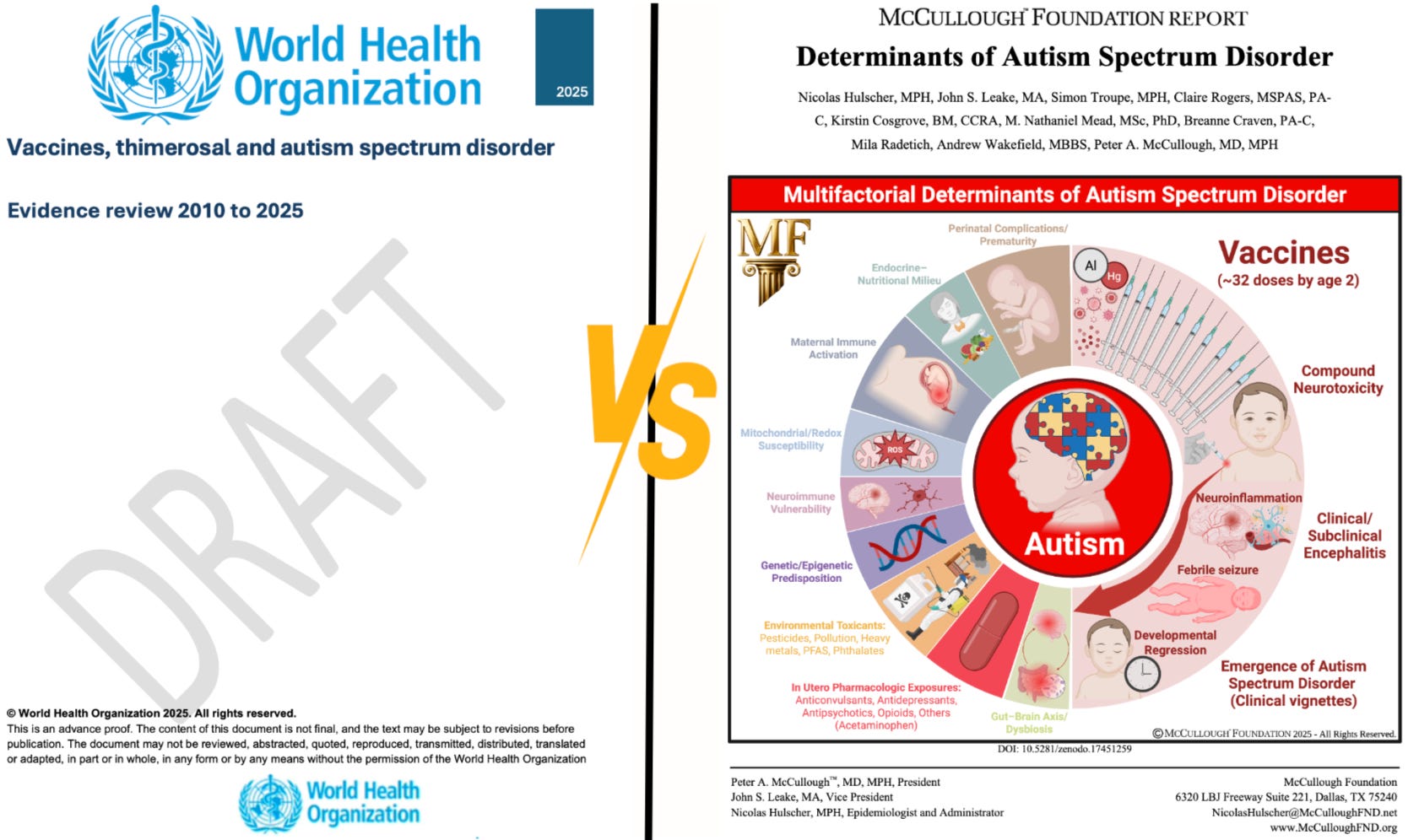 Dr. Peter McCullough MD - Dec 12th 2025 5:27pm EST by Nicolas Hulscher, MPH Today, the World Health Organization released its report, Vaccines, Thiomersal and Autism Spectrum Disorder: Evidence Review 2010–2025. Predictably, the WHO repeats the same pre-scripted conclusion it has delivered for two decades: that childhood vaccines pose no risk for autism. But when this new WHO document is compared to the McCullough Foundation’s […]