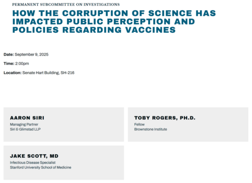 Dr. Peter McCullough MD - Sep 9th 2025 5:23am EDT By Peter A. McCullough, MD, MPH Please be sure to attend in person or online this important US Senate, Department of Homeland Security and Governmental Affairs, Permanent Subcommittee on Investigations where there will be a discussion on how the science around vaccines has become corrupted leading to great controversy and an increasingly negative perception of […]