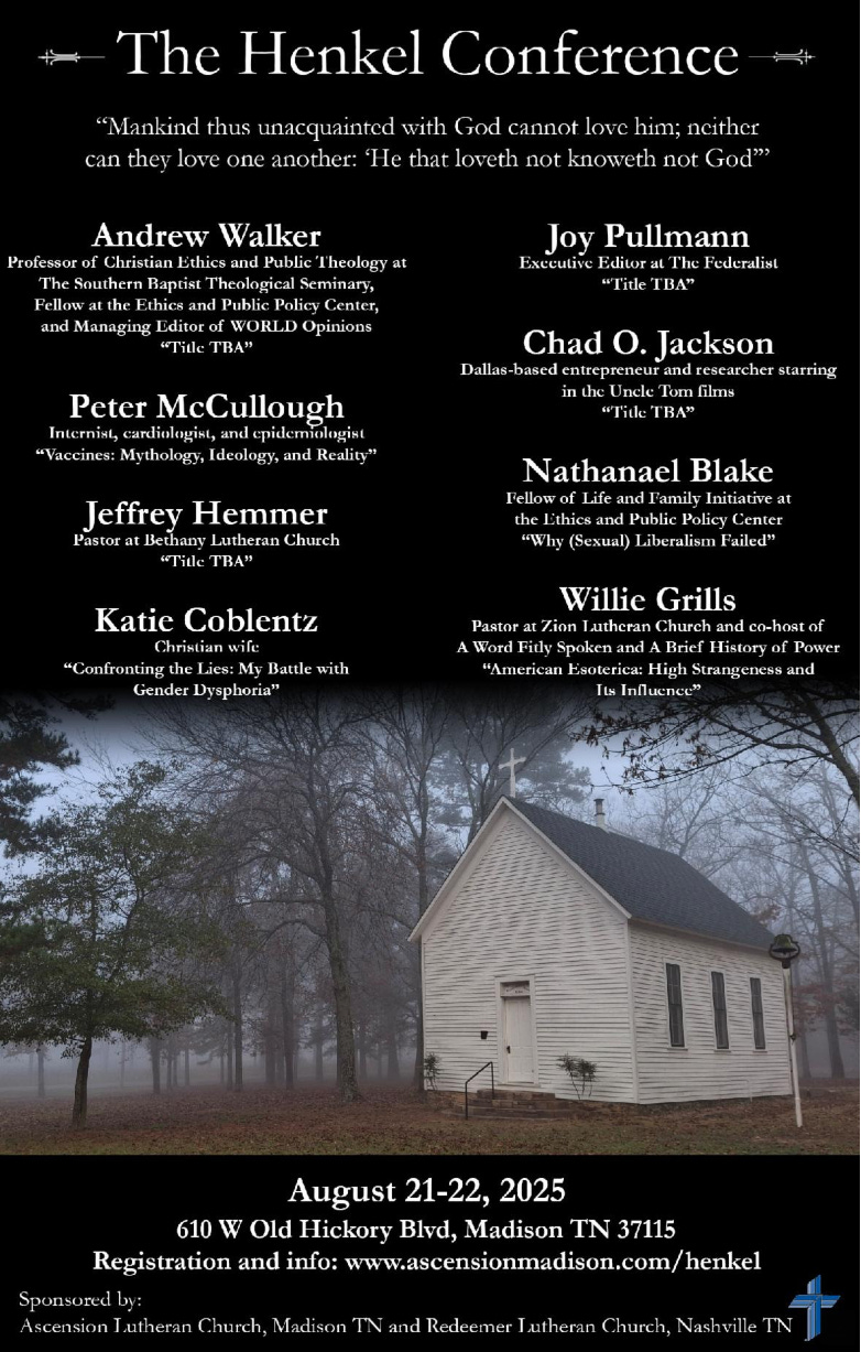 Dr. Peter McCullough MD - Sep 8th 2025 2:47pm EDT By Peter A. McCullough, MD, MPH Please enjoy this long format, Chautauqua-style lecture Dr. McCullough delivered at the Annual Henkel Conference led by Rev. Greg Bauch pastor of Ascension Lutheran Church in Madison, TN, a supporting congregation of Luther Classical College. Each year Bauch assembles a group of talented speakers and intellectuals for wonderful dialectics […]