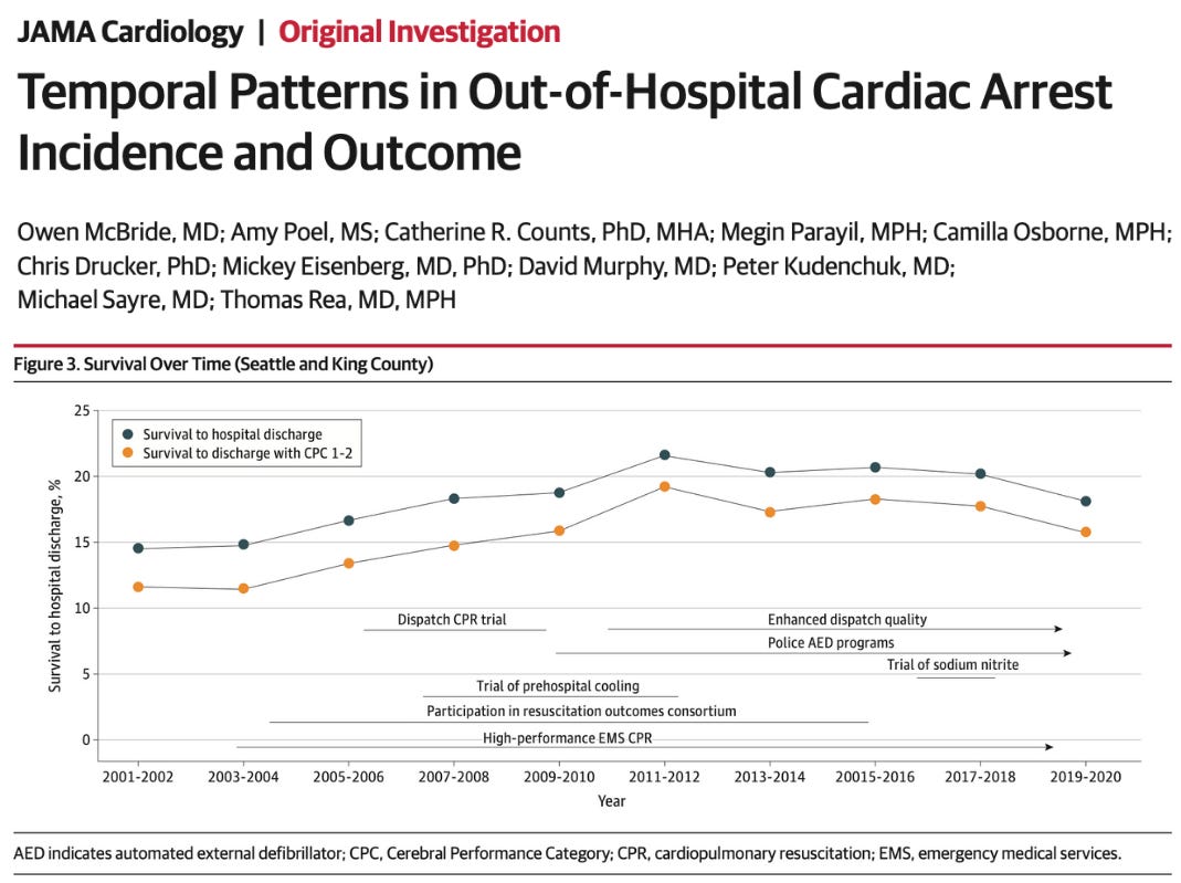 Dr. Peter McCullough MD - Jul 17th 2025 2:23pm EDT By Nicolas Hulscher, MPH A new JAMA Cardiology study by McBride et al confirms what emergency physicians in King County, WA, have long hoped: survival after out-of-hospital cardiac arrest (OHCA) has steadily improved for two decades. From 2001 to 2020, survival to hospital discharge rose from 14.7% to 18.9%, with even greater gains for shockable […]