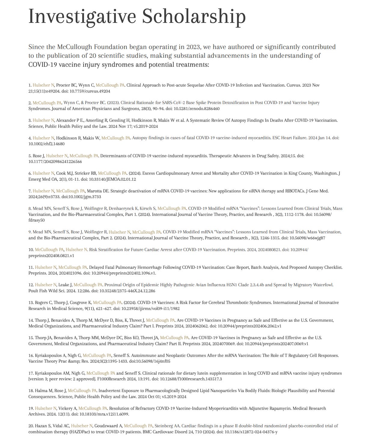 The McCullough Foundation Has Published Over 20 Studies Exposing the Harms of COVID-19 mRNA Injections