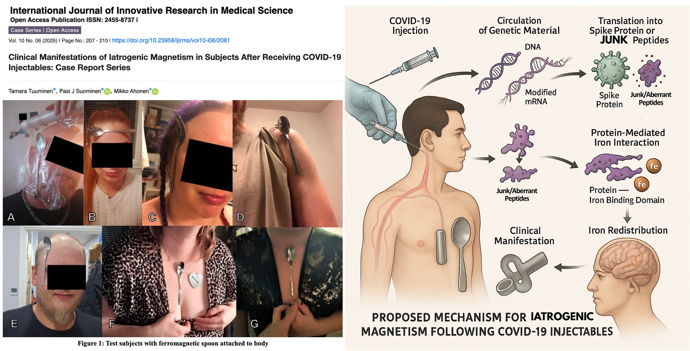Dr. Peter McCullough MD - Jun 12th 2025 2:41pm EDT By Nicolas Hulscher, MPH The study titled, Clinical Manifestations of Iatrogenic Magnetism in Subjects After Receiving COVID-19 Injectables: Case Report Series, was just published in the International Journal of Innovative Research in Medical Science: Abstract A series of cases of COVID-19 vaccine-injected patients suffering from iatrogenic magnetism is described. The attachment of massive metallic objects […]