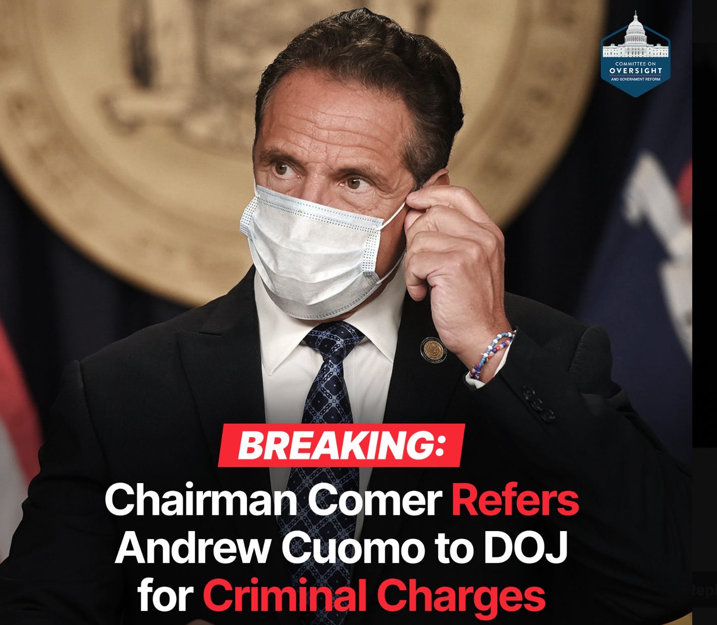 Dr. Peter McCullough MD - Apr 22nd 2025 6:48pm EDT Last October, the Select Subcommittee on the Coronavirus Pandemic sent a criminal referral to the Justice Department, recommending former New York Gov. Andrew Cuomo be charged with making false statements to Congress. “President Biden’s” DOJ ignored the referral. Now comes the news that House Oversight Committee Chairman James Comer, R-Ky., has asked Trump’s Justice Department […]