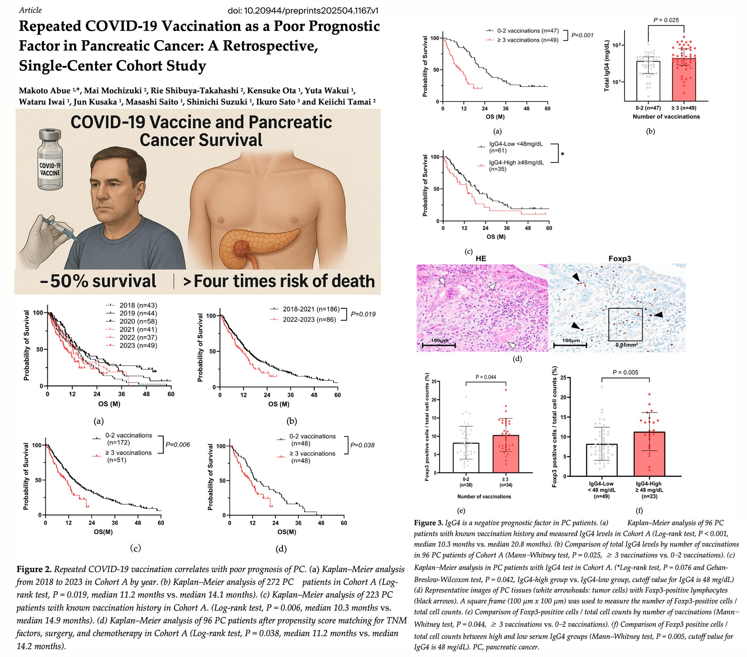 Dr. Peter McCullough MD - Apr 15th 2025 8:22pm EDT by Nicolas Hulscher, MPH The study titled “Repeated COVID-19 Vaccination as a Poor Prognostic Factor in Pancreatic Cancer: A Retrospective, Single-Center Cohort Study” was just uploaded to the Preprints.org preprint server: Background/Objectives: The COVID-19 vaccine is a significant technological advancement with widespread global use. However, its effect on cancer immunity, particularly with repeated vaccinations, remains […]
