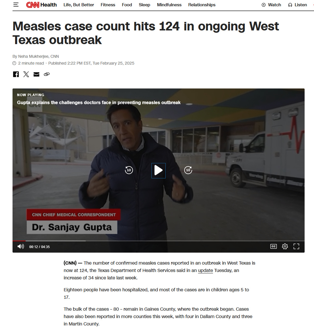 Dr. Peter McCullough MD - Feb 27th 2025 1:32pm EST by Nicolas Hulscher, MPH A google search for ‘measles’ reveals the coordinated fear campaign propagated by pharma-sponsored mass media: Is there a reason to cower in fear as the news suggests and rush to get MMR booster shots? No. Measles outbreaks occur every year across the United States despite 90.8% MMR vaccine uptake: Shedding of […]
