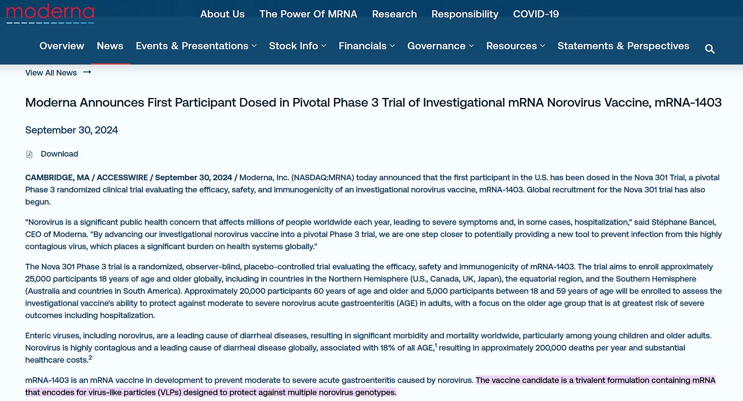 Dr. Peter McCullough MD - Jan 25th 2025 5:35am EST By Peter A. McCullough, MD, MPH Many have asked if synthetic vaccine mRNA can be injected in the arm and provide immunity in the gastrointestinal tract. Biotech company Moderna is counting on good mRNA antibody secretion with their bivalent mRNA coding for the Norwalk Virus major capsid protein VP1 from GI.1 and GII.4 strains which […]