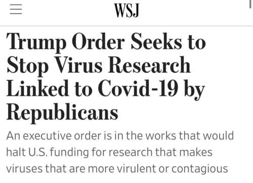 Dr. Peter McCullough MD - Jan 22nd 2025 7:30pm EST By Nicolas Hulscher, MPH According to the Wall Street Journal: “The Trump administration is preparing an executive order that would halt federal funding, at least temporarily, for a risky and controversial kind of research into viruses that makes the pathogens more dangerous or contagious. The goal of the order would be to stop scientists with […]