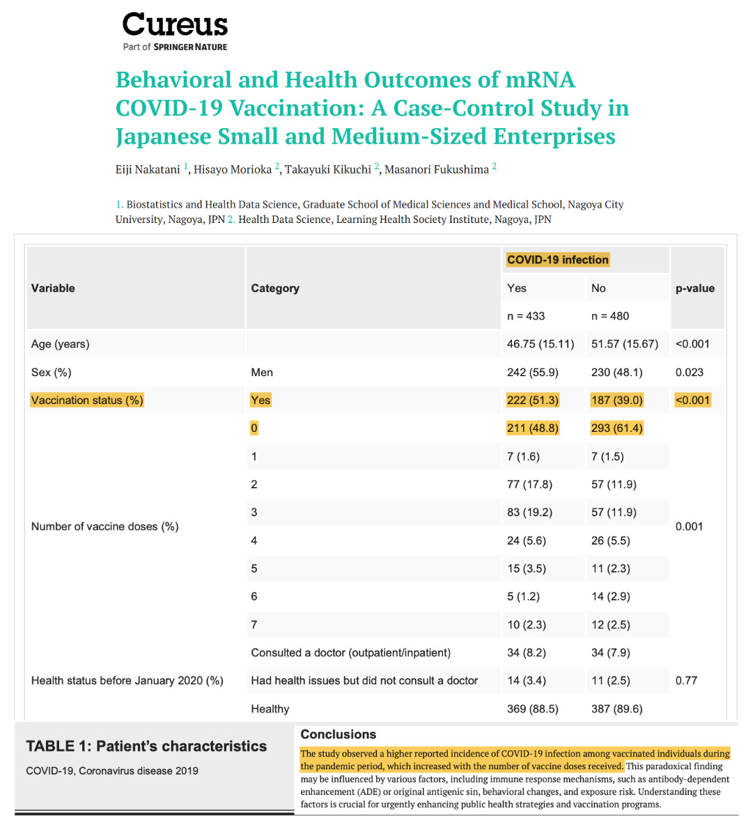 Dr. Peter McCullough MD - Jan 6th 2025 1:10pm EST by Nicolas Hulscher, MPH Last month, I summarized the four primary studies that demonstrate negative efficacy of COVID-19 mRNA injections: There’s now another study to add to the list: Behavioral and Health Outcomes of mRNA COVID-19 Vaccination: A Case-Control Study in Japanese Small and Medium-Sized Enterprises published in the journal Cureus. They found the following: […]