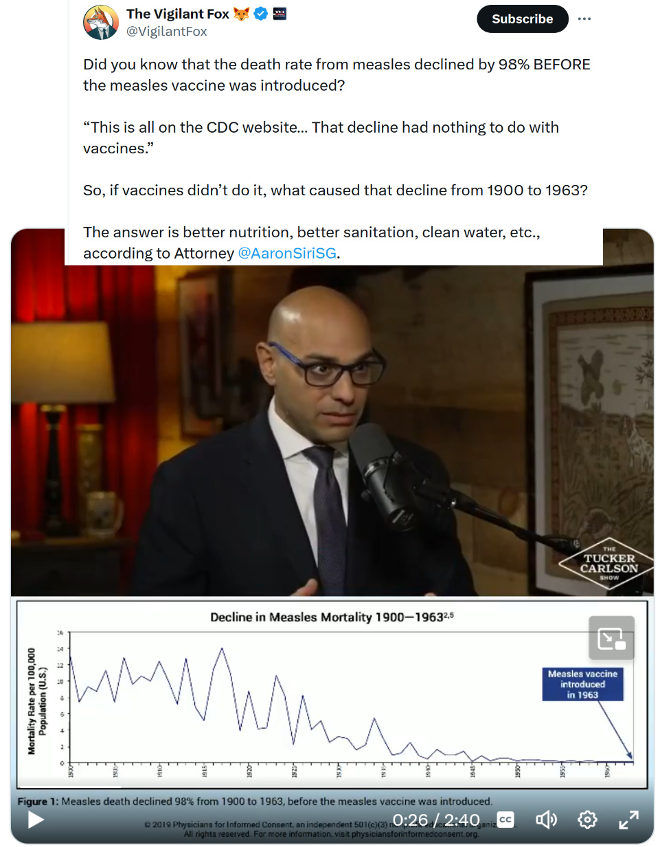 Dr. Peter McCullough MD - Jan 5th 2025 5:19am EST By Peter A. McCullough, MD, MPH Many experts have pointed out that the mortality rate from measles had reduced 98% before the introduction of the measles vaccine in 1963. This is best substantiated in Dissolving Illusions: Disease, Vaccines, and the Forgotten History 10th Anniversary Edition Companion and Reference, by Roman Bystrianyk and Dr SuzanneHumphries. By […]
