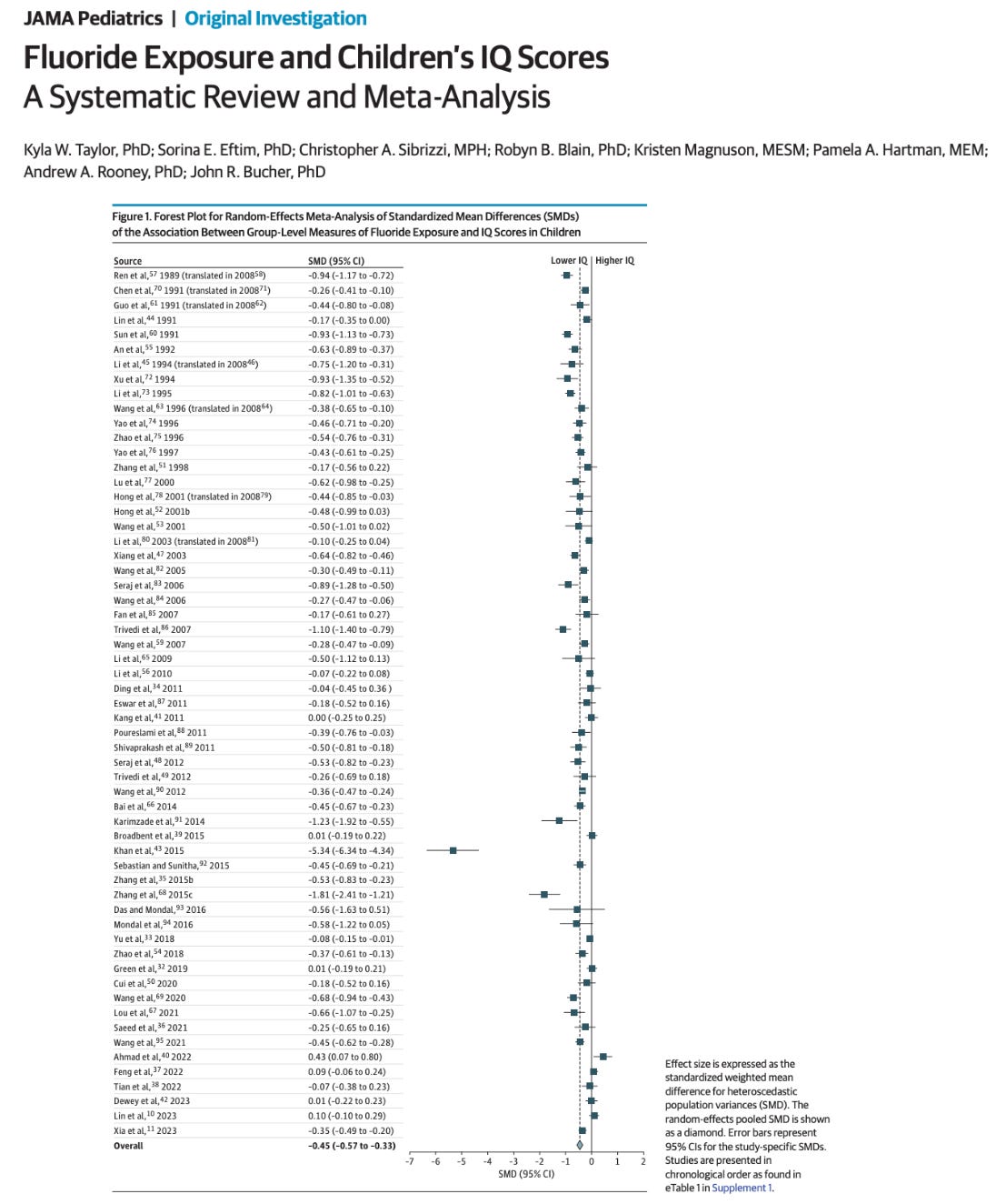 Dr. Peter McCullough MD - Jan 7th 2025 11:02am EST by Nicolas Hulscher, MPH The study titled, Fluoride Exposure and Children’s IQ Scores: A Systematic Review and Meta-Analysis, was just published in JAMA Pediatrics: Key Points Question – Is fluoride exposure associated with children’s IQ scores? Findings – Despite differences in exposure and outcome measures and risk of bias across studies, and when using group-level […]