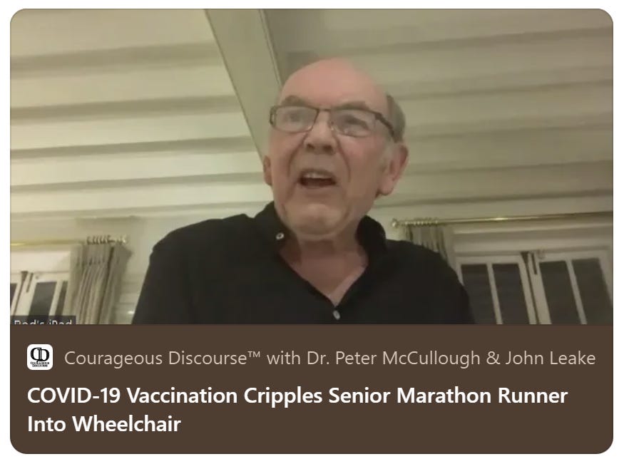 Dr. Peter McCullough MD - Jan 3rd 2025 5:58am EST By Peter A. McCullough, MD, MPH With great sadness I am reporting that our December 2, 2023 Courageous Discourse guest Rod Shears, a former British CEO and marathoner died of a progressive COVID-19 vaccine induced neuromuscular disease with features of both Guillain-Barre Syndrome and Amyotrophic Lateral Sclerosis. He was perfectly healthy before two AstraZeneca COVID-19 […]