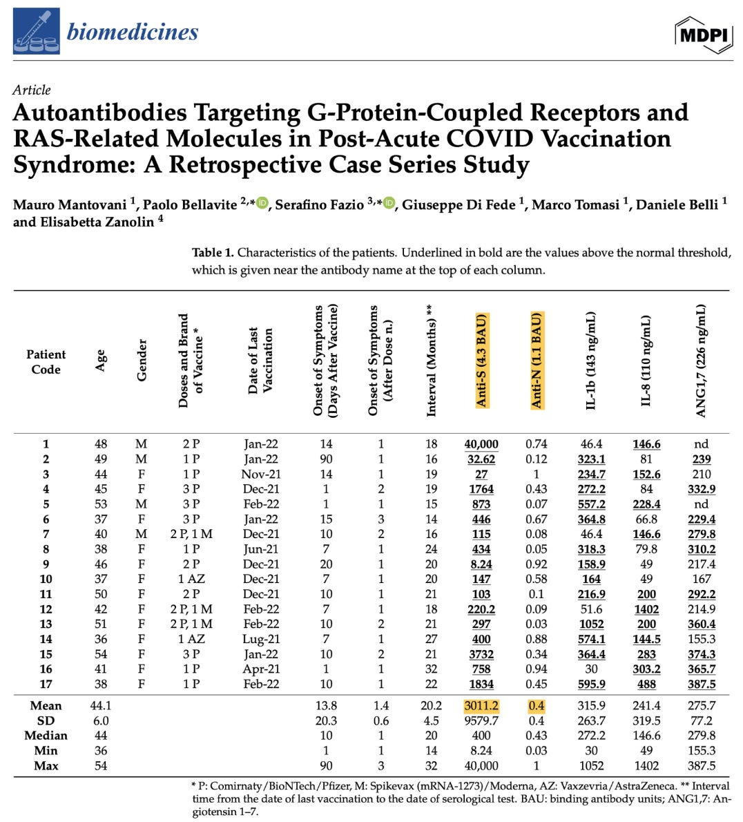 Dr. Peter McCullough MD - Dec 17th 2024 6:50pm EST by Nicolas Hulscher, MPH The study titled, Autoantibodies Targeting G-Protein-Coupled Receptors and RAS-Related Molecules in Post-Acute COVID Vaccination Syndrome: A Retrospective Case Series Study, was just published in the journal Biomedicines: Here’s what they found: Elevated Spike Antibodies vs. Nucleocapsid Antibodies Patients with PACVS show markedly elevated anti-spike (S) antibodies (mean= 3011.2 BAU/mL) and minimal […]