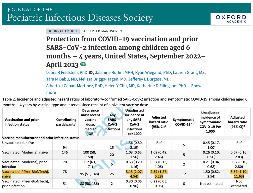 Dr. Peter McCullough MD - Dec 16th 2024 5:02pm EST by Nicolas Hulscher, MPH A new study was just published in the Journal of the Pediatric Infectious Diseases Society titled, Protection from COVID-19 vaccination and prior SARS-CoV-2 infection among children aged 6 months – 4 years, United States, September 2022–April 2023. The study combined data from three prospective cohort studies (PROTECT, CASCADIA, and CoVE) conducted […]