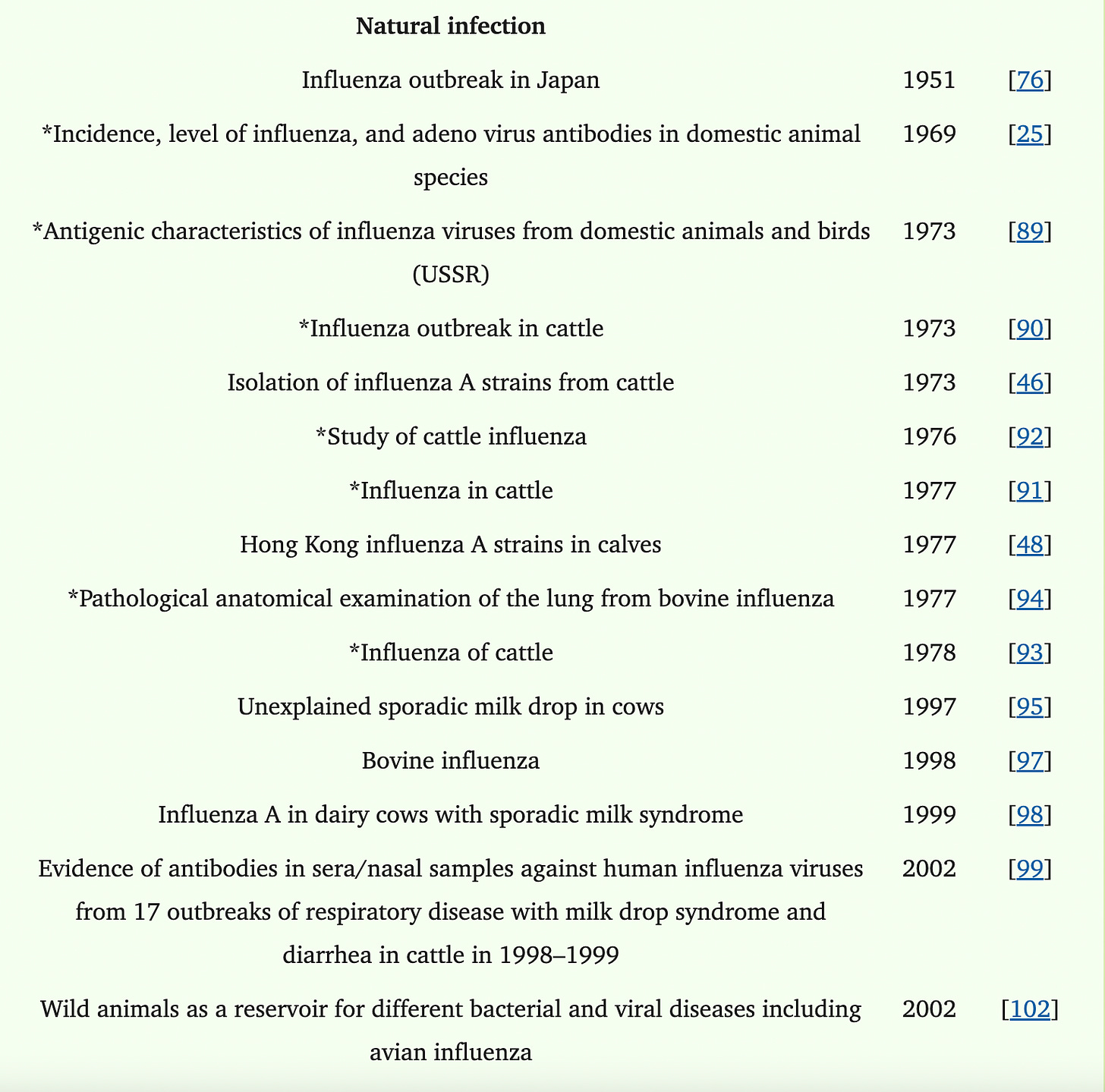 Dr. Peter McCullough MD - Dec 19th 2024 1:05pm EST Reviewing the literature on Influenza A in cattle, I see that until 2024, it was regarded as extremely rare. Documented cases of natural influenza A infections in cattle are presented on the following graph, published in a 2019 paper titled Influenza A in Bovine Species: A Narrative Literature Review in the journal Virus. The following […]
