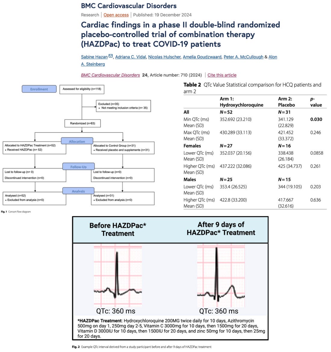 Dr. Peter McCullough MD - Dec 19th 2024 12:42pm EST by Nicolas Hulscher, MPH The ProgenaBiome and McCullough Foundation study titled Cardiac findings in a phase II double-blind randomized placebo-controlled trial of combination therapy (HAZDPac) to treat COVID-19 patients, co-authored by Sabine Hazan, Adriana C. Vidal, Nicolas Hulscher, Amelia Goudzwaard, Peter A. McCullough & Alon A. Steinberg, was just published in the journal BMC Cardiovascular […]