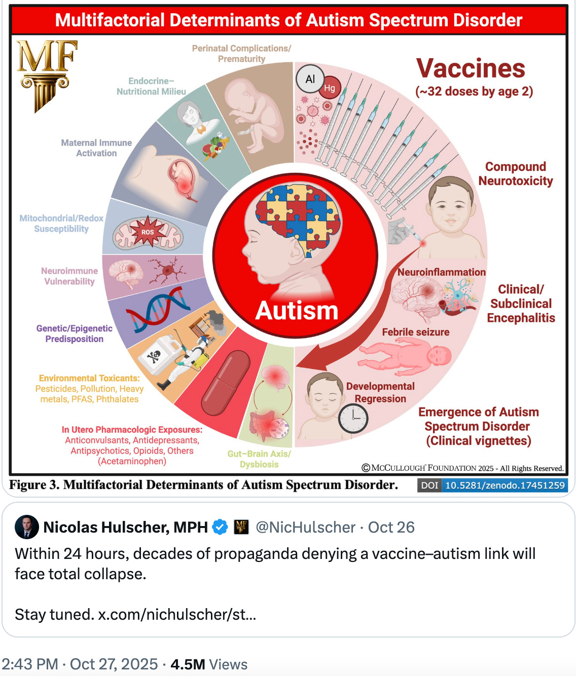 Dr. Peter McCullough MD - Oct 28th 2025 5:52pm EDT Dr. Peter Hotez—the Disheveled Apostle of the Vaccine Cult—has responded to the publication of the McCullough Foundation’s “Determinants of Autism” report with ad hominem, virtue-signaling humbug instead of addressing the paper’s contents. The “Determinants of Autism” paper has been downloaded 24,000 times since we published it yesterday afternoon, and Nicholas Hulscher’s announcement on X has […]