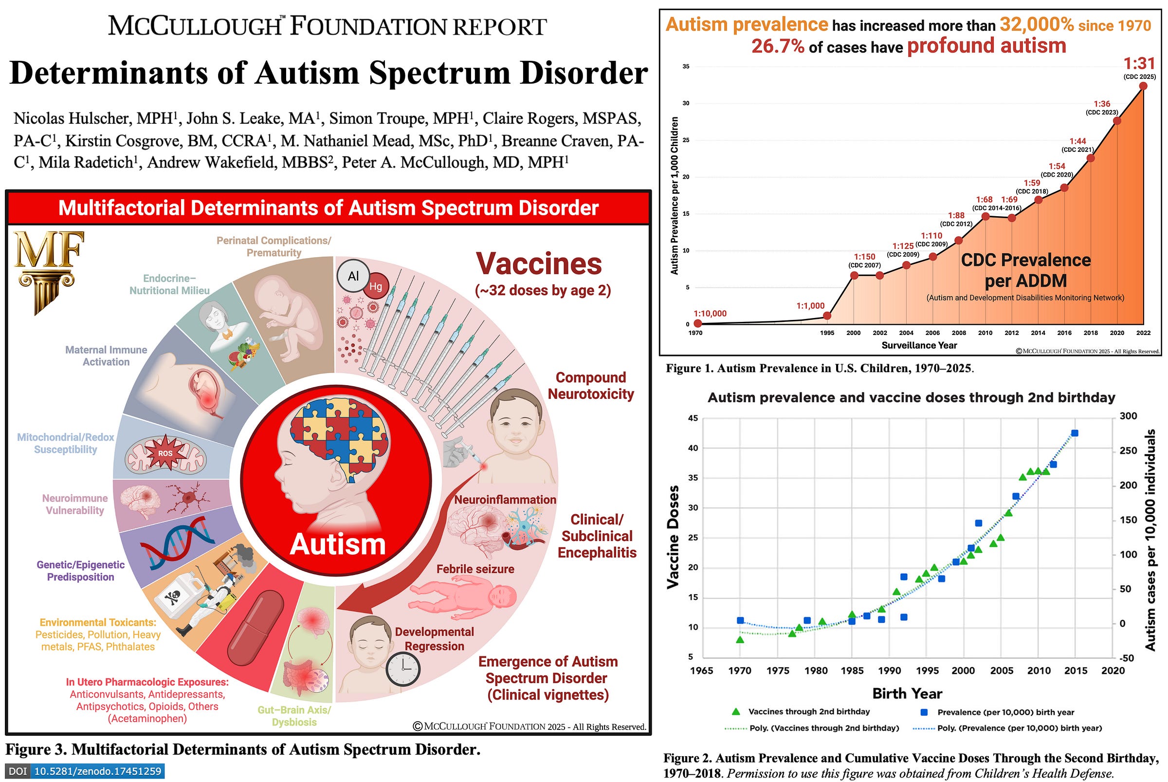 Dr. Peter McCullough MD - Oct 30th 2025 5:43pm EDT by Nicolas Hulscher, MPH For over two decades, Dr. Andrew Wakefield has been vilified for reporting what countless parents saw with their own eyes — that their healthy children regressed into autism following vaccination. Now, in our landmark McCullough Foundation report, Determinants of Autism Spectrum Disorder, we bring together over 300 studies confirming that vaccines […]