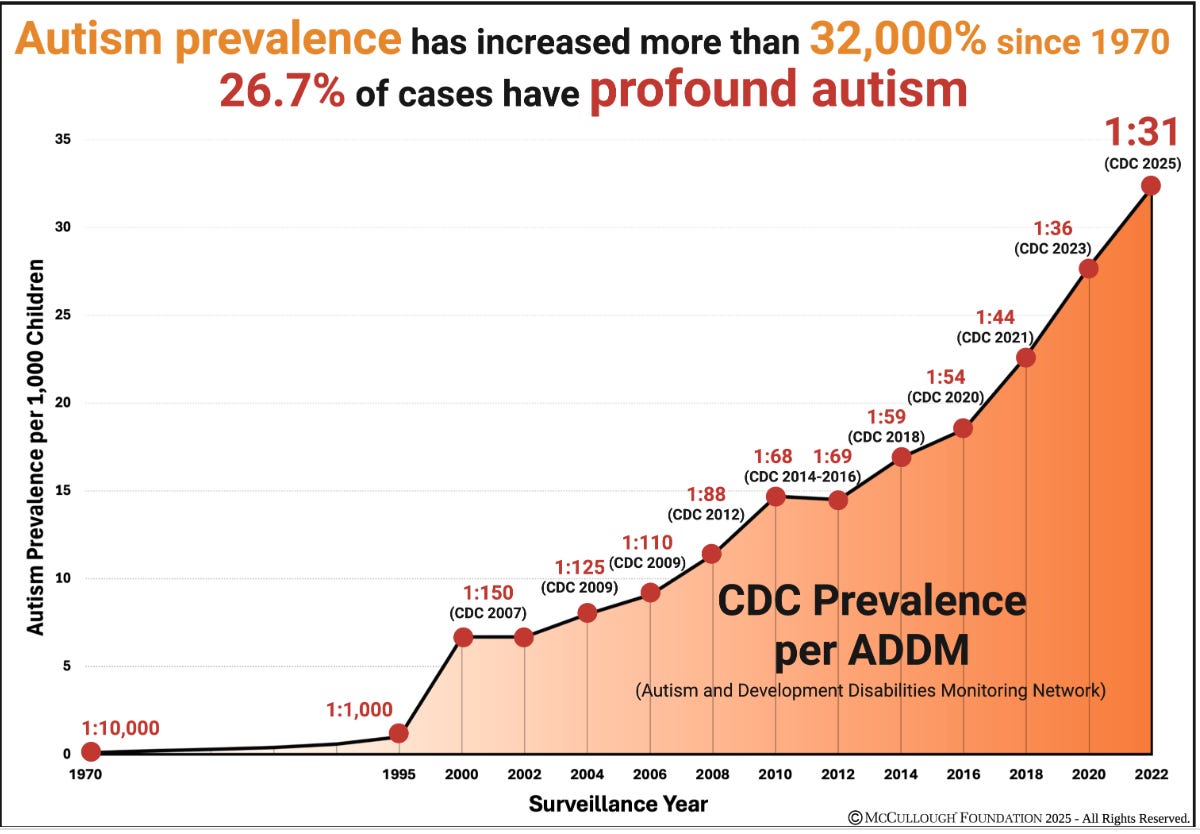 Dr. Peter McCullough MD - Oct 27th 2025 4:35pm EDT A picture is worth a thousand words. When asked what is causing this breathtaking spike of autism that began shortly after Congress granted vaccine manufacturers liability protection in 1986—resulting in the rapid proliferation of vaccines on the childhood schedule—CNN medical correspondent, Sanjay Gupta, said, “We don’t know what causes autism, but we know that vaccines […]
