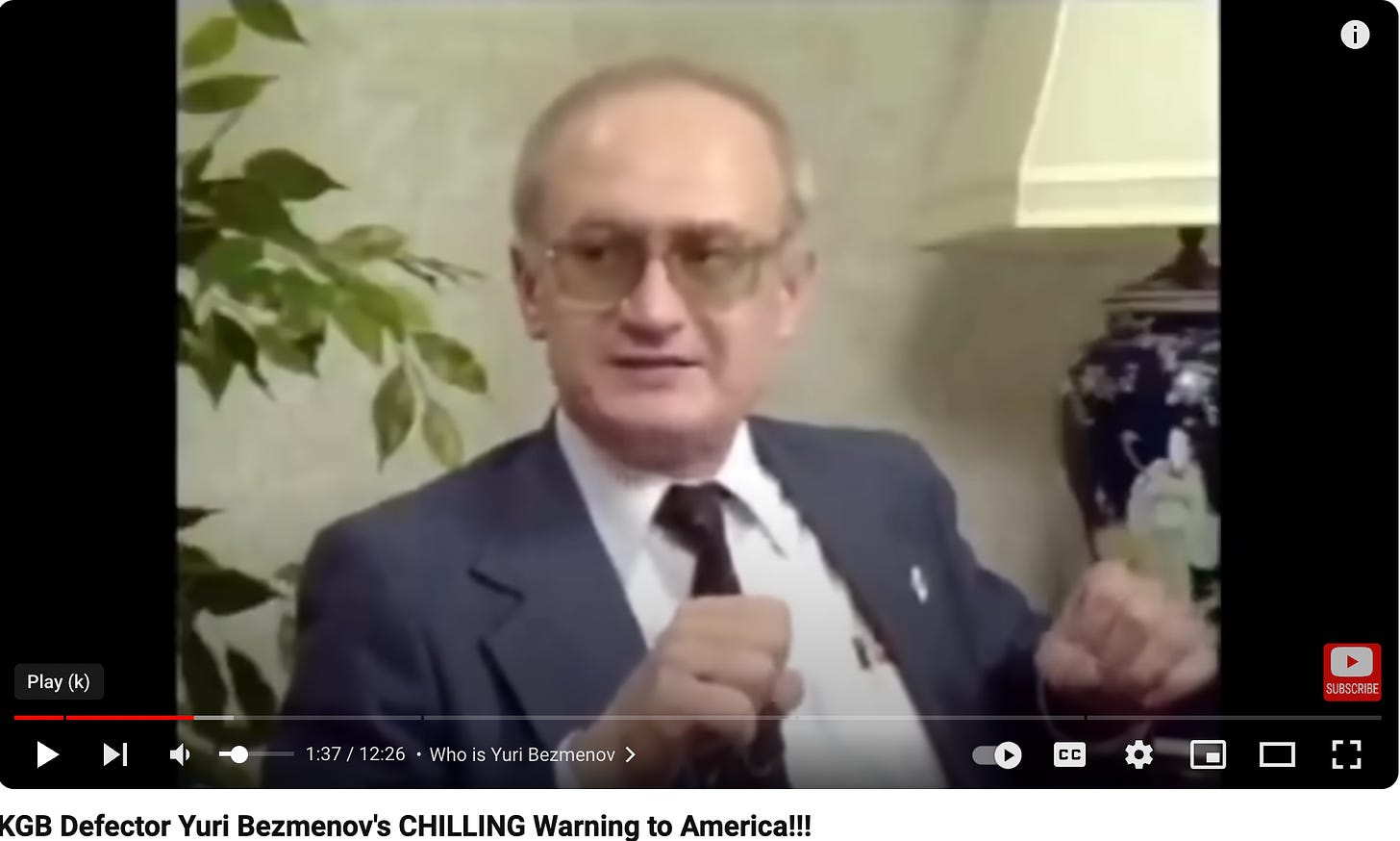 Dr. Peter McCullough MD - Jun 22nd 2024 11:49am EDT Last year I was asked to serve as one of the narrators of a forthcoming documentary film about Yuri Bezmenov, who defected to Canada in 1970 and gave a series of lectures and interviews about the danger of Marxist-Leninist ideology. In recent years, Bezmenov’s explication of “demoralization” in a now famous 1983 interview with G. […]