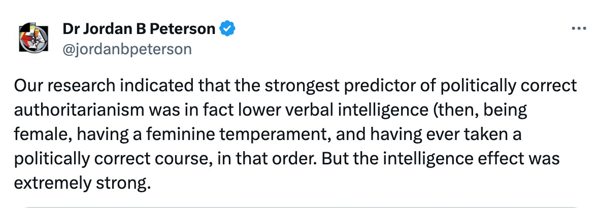 Low Verbal IQ Predictor of Politically Correct Authoritarianism