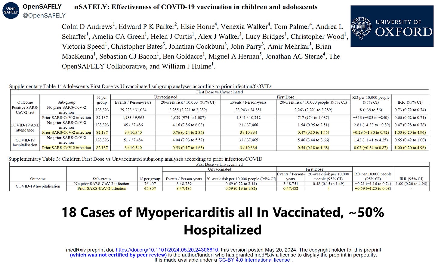 Dr. Peter McCullough MD - Jun 6th 2024 5:53am EDT By Peter A. McCullough, MD, MPH The relentless public health push to vaccinate children for COVID-19 all over the world has left parents public baffled. Children never appeared to be at high risk and most contracted the illness before vaccines were authorized in their age group. Now a large (N=820,296 unvaccinated, N=441,858 vaccinated) Oxford study […]