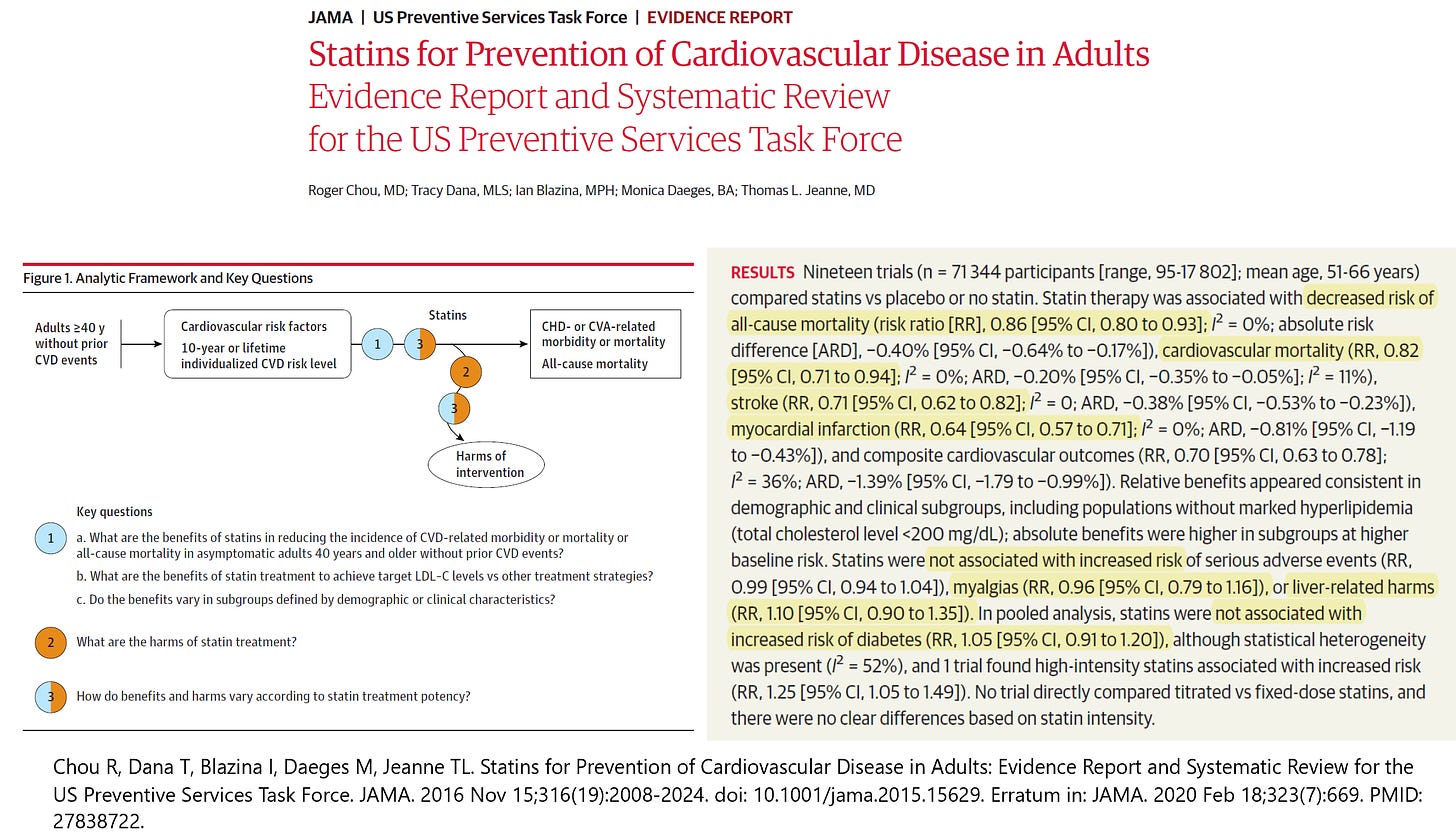 Statins for Prevention of Cardiovascular Disease in Adults: Evidence Report and Systematic Review for the US Preventive Services Task Force