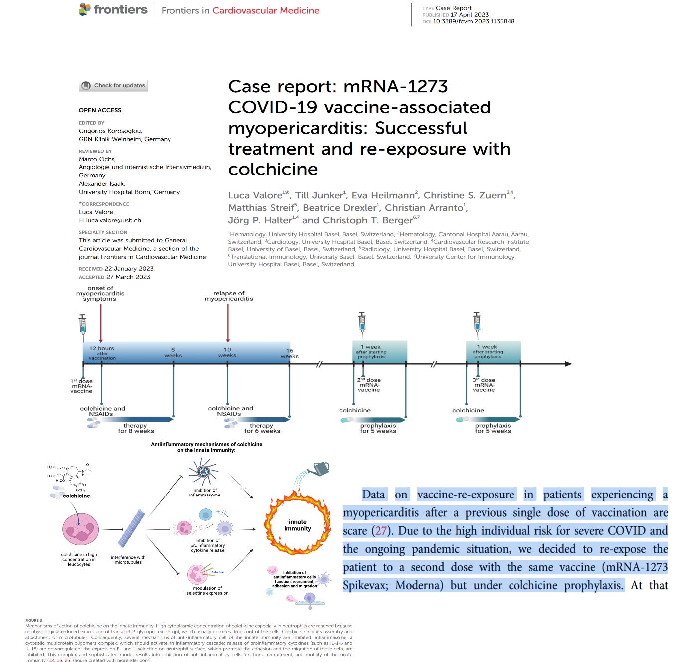 Dr. Peter McCullough MD - Mar 16th 2024 5:11am EDT By Peter A. McCullough, MD, MPH Oral generic colchicine has been a mainstay in the McCullough Protocol for the acute treatment of COVID-19 respiratory illness. It is also standard of care in the treatment of acute gout and in the management of myopericarditis long before the pandemic. I prescribe this drug almost everyday in my […]