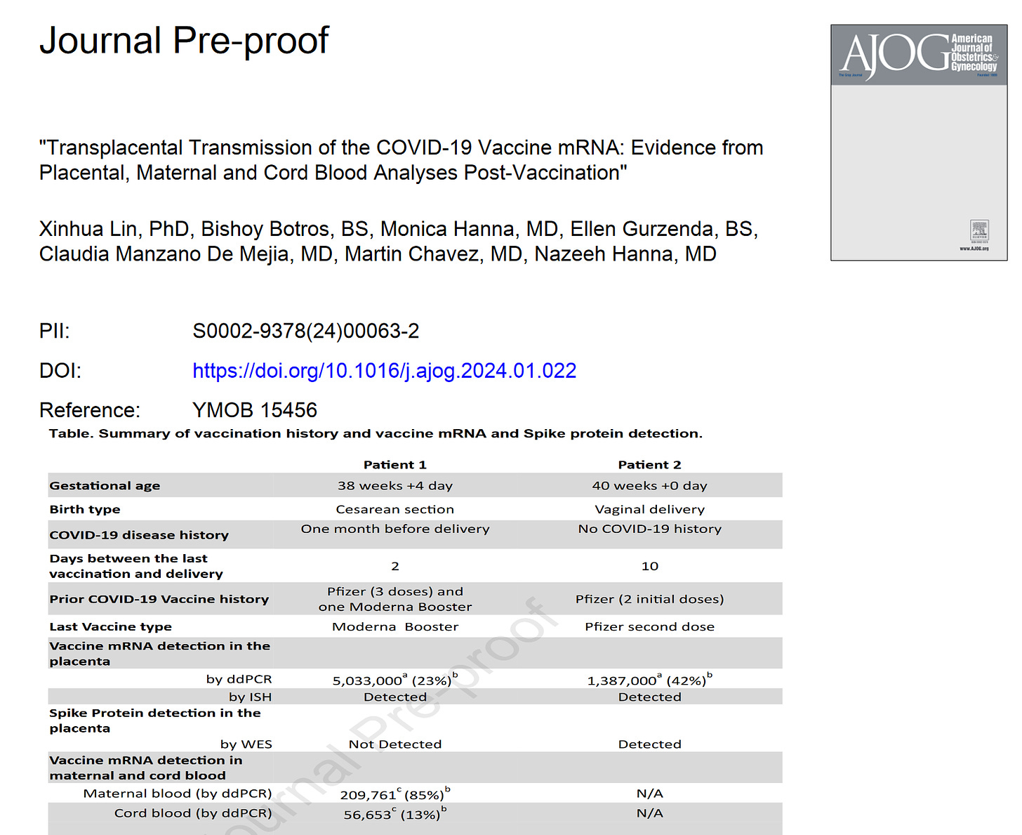 Dr. Peter McCullough MD - Feb 17th 2024 5:55am EST By Peter A. McCullough, MD, MPH Thorp et al published alarming risks of fetal and maternal hemorrhage among mothers who took a COVID-19 vaccine compared to the influenza vaccine during pregnancy. But does the mRNA actually get into the newborns blood? Lin et al studied two mothers who were freshly vaccinated before delivery. One of […]