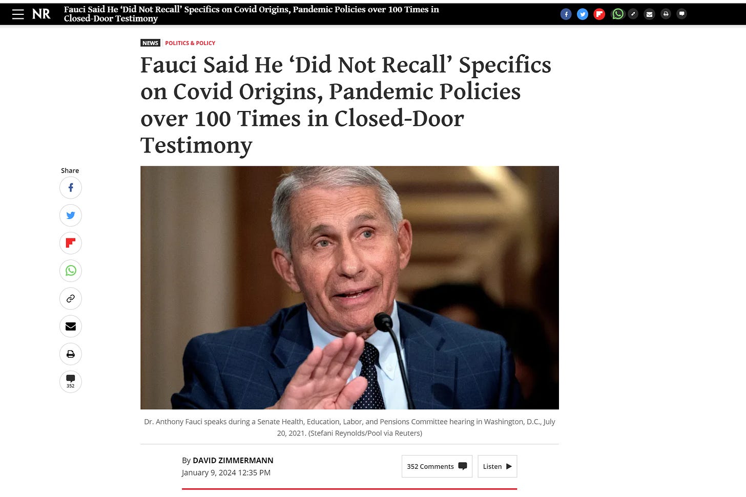 Fauci’s Testimony on Capitol Hill was that of a Guilty Man