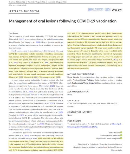 Management of Oral Lesions after COVID-19 Vaccination