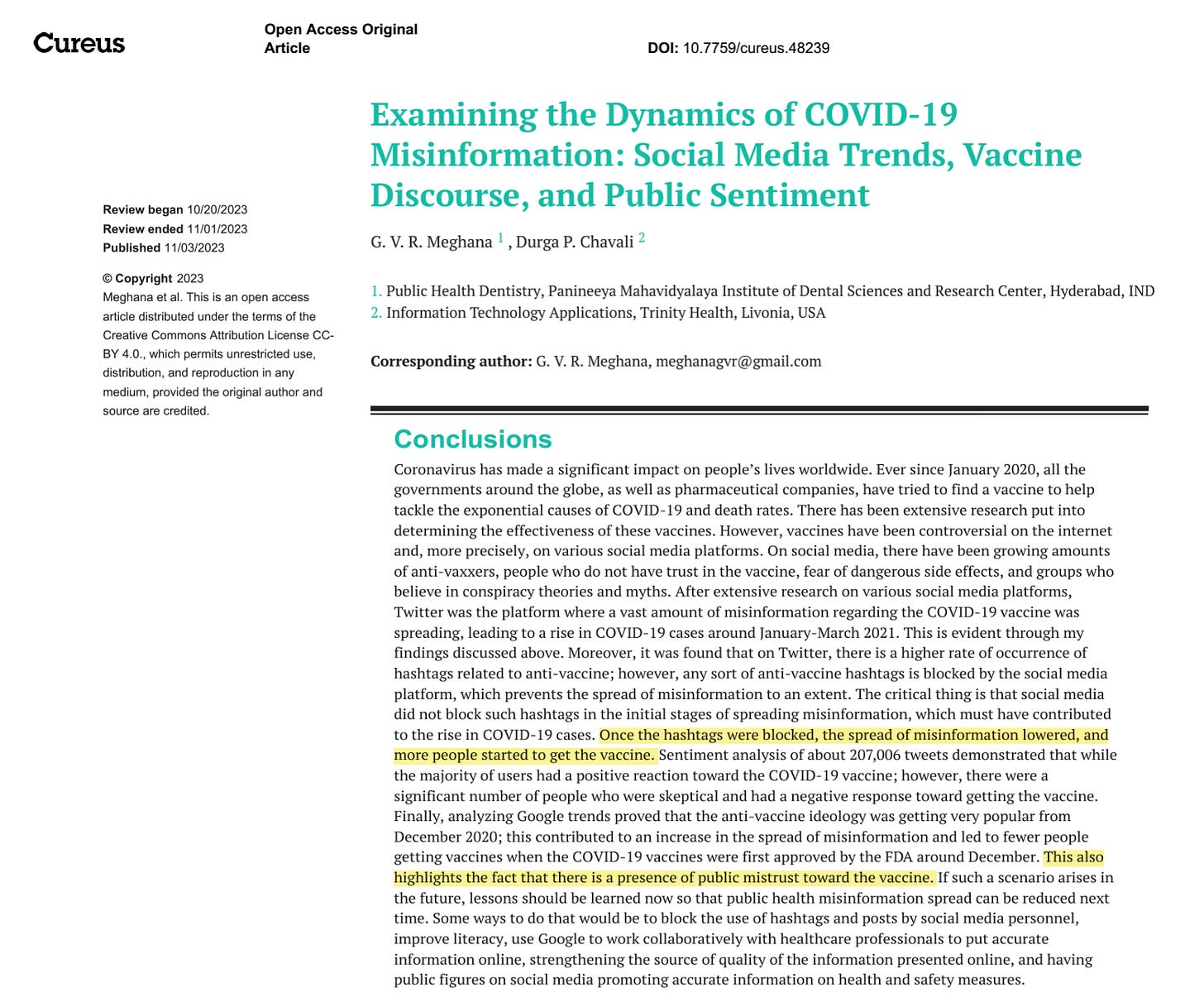 Public Has Lost Trust in Scientific Manuscripts from Vaccinated Authors or Institutions that Promote or Mandate COVID-19 Vaccination