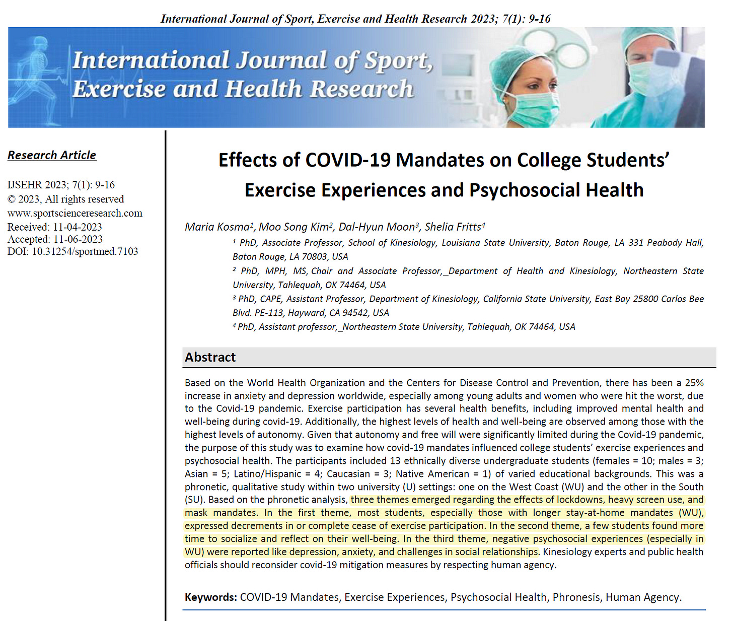 Dr. Peter McCullough MD - Oct 9th 2023 5:31am EDT By Peter A. McCullough, MD, MPH We are coming up on four years of the SARS-CoV-2 outbreak and the COVID-19 pandemic. What has been the impact to young people who have been notably silent on restrictions of civil liberties and the myriad of changes in their lives. I sat down with Dr. Maria Kosma, Associate […]