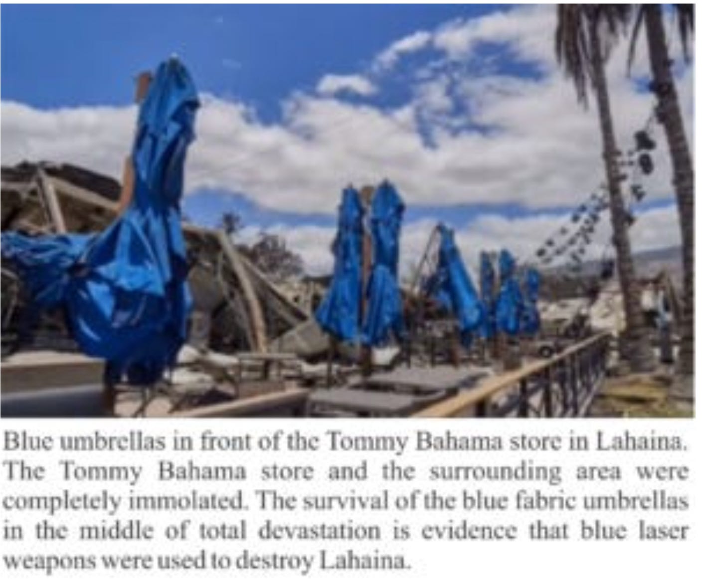 Dr. Peter McCullough MD - Aug 27th 2023 2:27pm EDT I continue to receive questions from readers about the blue umbrellas in front of Tommy Bahama on Papalaua Street. In my earlier posts I emphasized that the umbrellas (as well as the tables and coconut palm trees) next to the sidewalk were NOT composed of readily combustible materials, and I speculated that the umbrella material […]