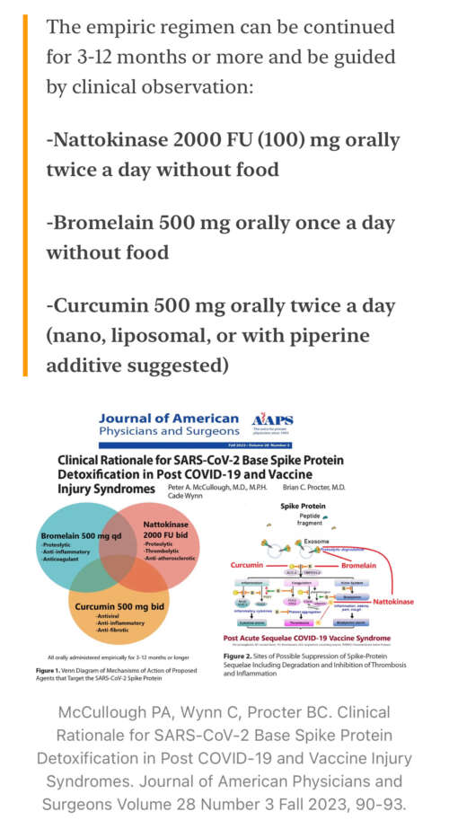 Dr. Peter McCullough MD - Aug 31st 2023 5:23am EDT By Peter A. McCullough, MD, MPH It took less than a day since our Base Spike Protein Detoxification Protocol was published for the Biopharmaceutical Complex to come out with syndicate social media allies discrediting the most hopeful news long-COVID and vaccine suffers have heard since the start of their misery. Syndicate fact checker Science Feedback, […]