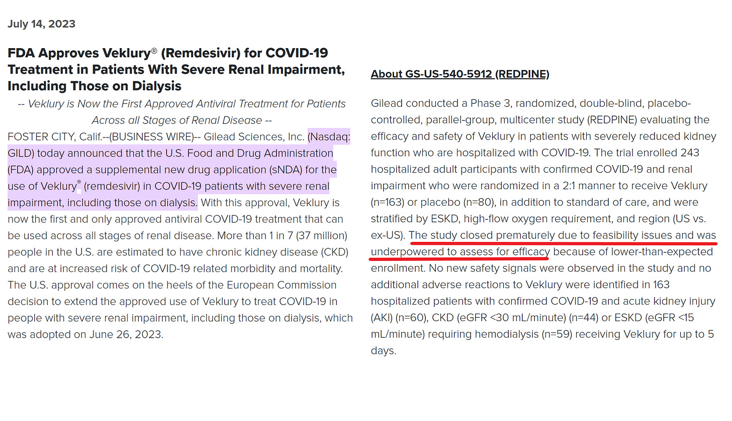 Dr. Peter McCullough MD - Jul 21st 2023 3:40pm EDT By Peter A. McCullough, MD, MPH In a move that defies all regulatory convention, the U.S. Food and Drug Administration (FDA) approved a supplemental new drug application (sNDA) for the use of Veklury® (remdesivir) in COVID-19 patients with severe renal impairment, including those on dialysis. With this approval, Veklury is now the first and only […]