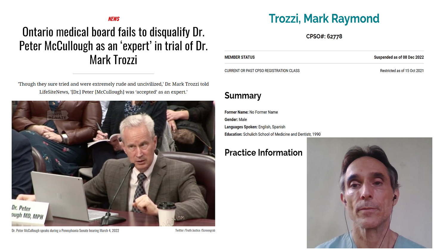 Dr. Peter McCullough MD - Jul 18th 2023 8:17am EDTBy Peter A. McCullough, MD, MPH Hard hitting news anchor Grant Stinchfield called out the College of Physicians and Surgeons of Ontario (CPSO) for unfair review procedures in the case of Dr. Mark Trozzi, an emergency physician with an excellent clinical track record. The College spent hours trying to discredit Dr. McCullough in the witness […]