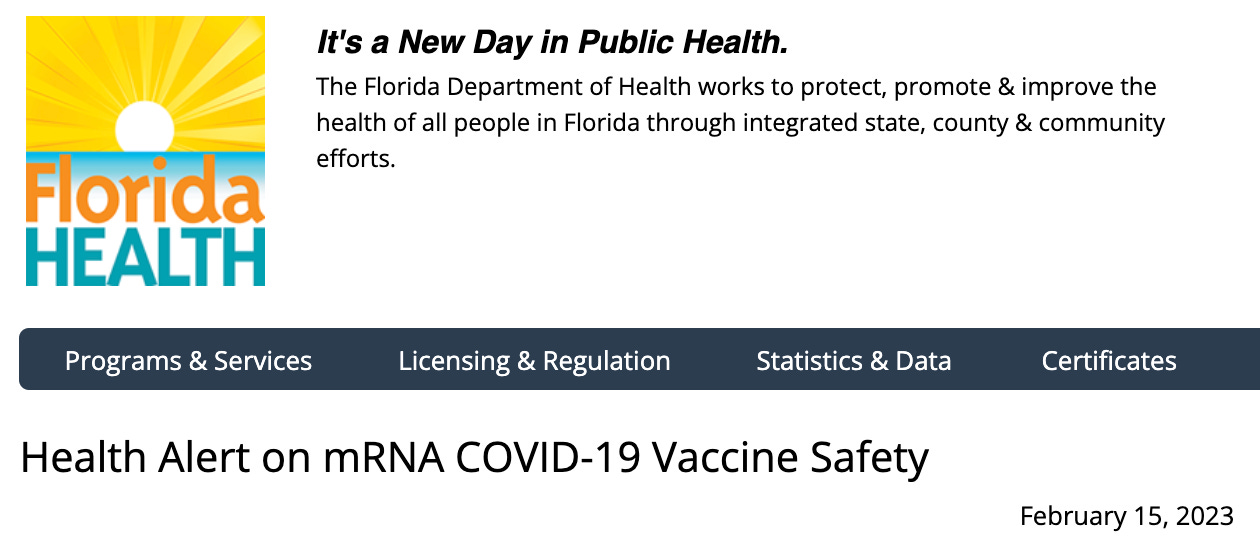 Health Alert on mRNA COVID-19 Vaccine Safety February 15, 2023 Contact: (Florida Health) Communications Office [email protected] (850) 245-4111 The COVID-19 pandemic brought many challenges that the health and medical field have never encountered. Although the initial response was led by a sense of urgency and crisis management, the State Surgeon General believes it is critical that as public […]