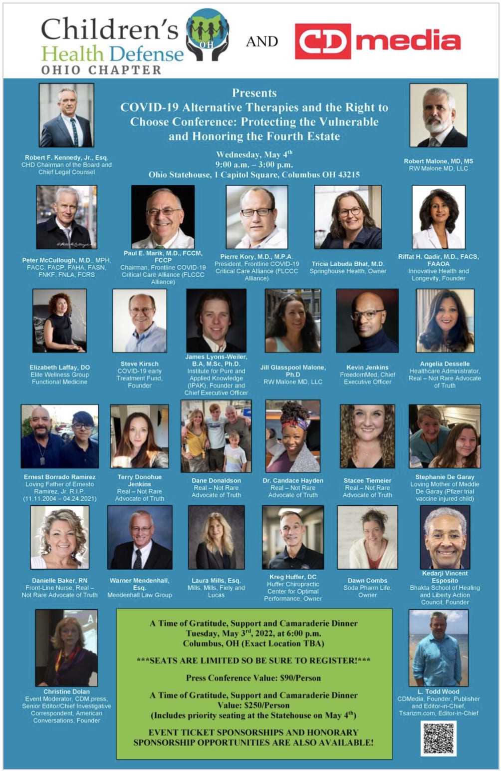 Please scroll to the bottom of this webpage to register. Date/TimeDate(s) – 5/4/20229:00 am – 3:00 pm LocationOhio Statehouse The nonprofit host organization Children’s Health Defense Ohio Chapter and presenters Creative Deconstruction Media (CDMedia) and American Conversations are eager to present the “COVID-19 Alternative Therapies and the Right to Choose Conference: Protecting the Vulnerable and […]