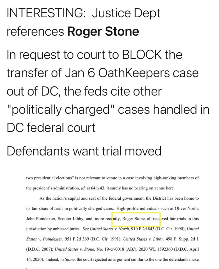 Roger Stone - Aug 3rd 2021 6:16pm EDT When the January 6th defendants sought to move their trial from the highly politicized D.C. circuit, prosecutors insisted that the Defendants would get a fair trial, and actually cited my trial as an example. The government pointed out that the judge ruled in my case that even though it was likely that a majority – […]