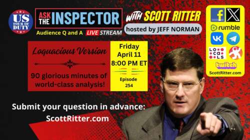 Ask the Inspector with Scott Ritter Ep. 254 (streams live on April 11 at 8 PM ET)