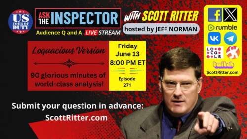Ask the Inspector with Scott Ritter Ep. 271 (streams live on June 13 at 8 PM ET)