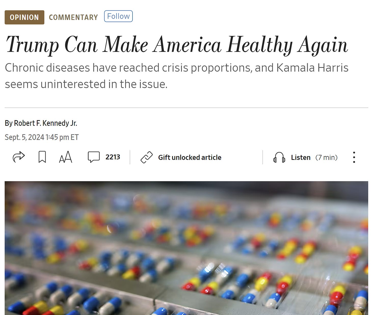 Steven Kirsch - Sep 7th 2024 4:21pm EDT Executive summary On September 5, RFK Jr. published a 12 step plan in the WSJ on how to make America healthy again. I’ll offer my plan too. Let me know which plan you like better. My plan Let doctors be doctors instead of telling them what to do Protect the free speech of doctors by […]