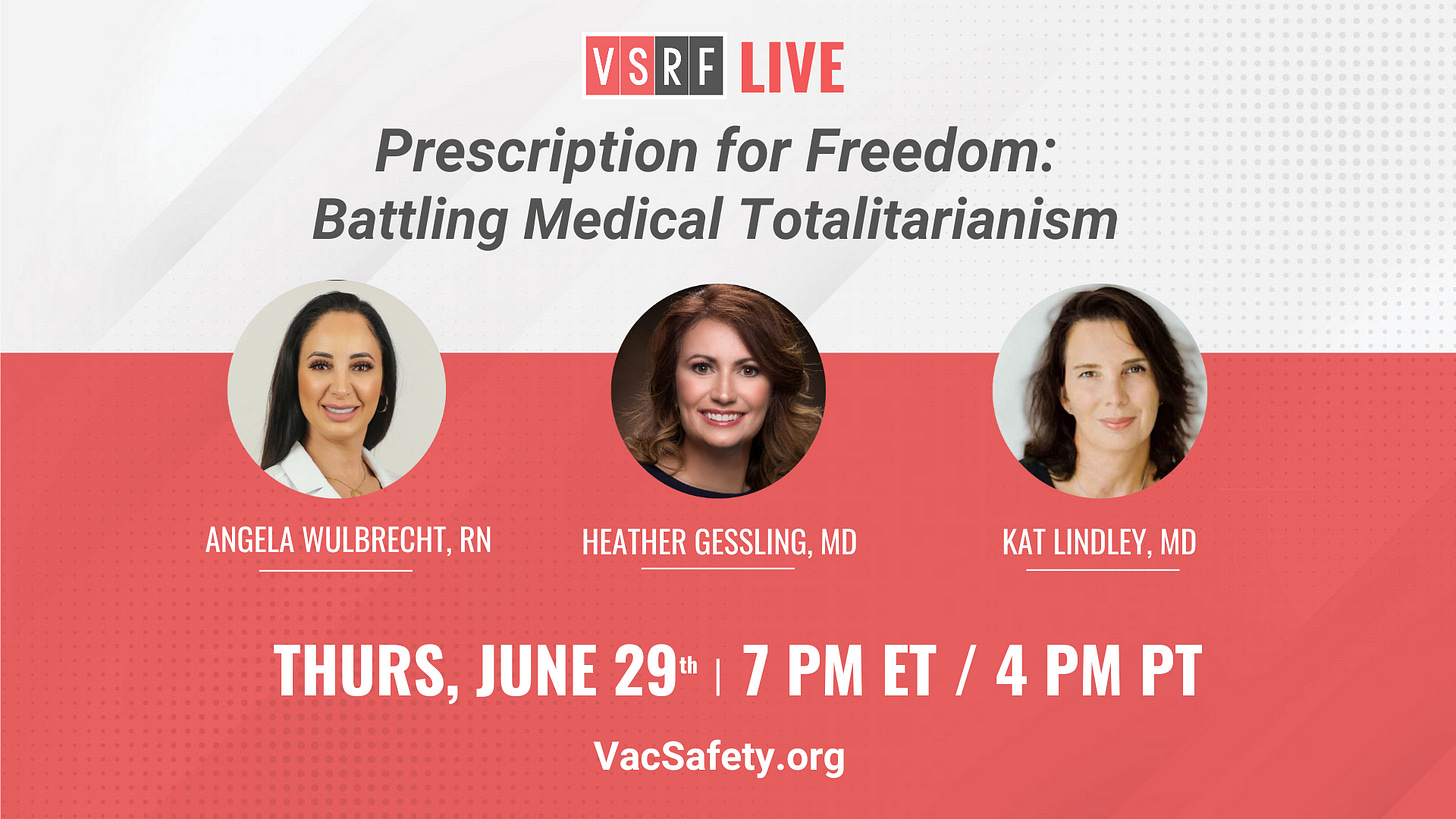 VSRF LIVEThursday, June 297pm Eastern | 4pm Pacific Register here to watch on ZoomOrLive stream on Rumble VSRF Live tonight features two of the most insightful doctors I have had the pleasure of knowing over these harrowing three years. Dr. Heather Gessling, MD, and Dr. Kat Lindley, MD will tackle the challenges faced by medical practitioners […]