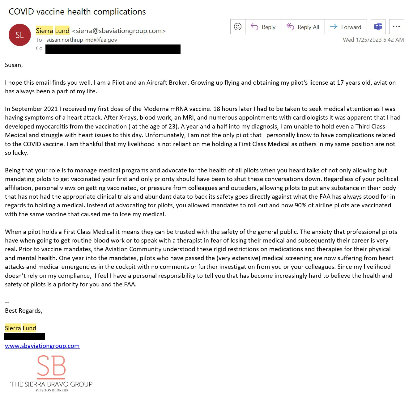 The FAA needs to change its tagline. Maybe to something honest like “We don’t care about pilots and flight attendants.” I wrote earlier that the Deputy Administrator of the FAA said “no comment” when I asked why the FAA was not investigating any pilot deaths/disability from the COVID vaccines. He said I should contact the […]