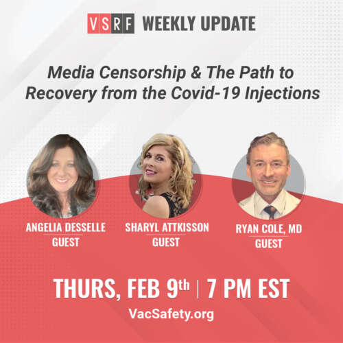 VSRF Weekly UpdateThursday, February 97pm Eastern | 4pm Pacific Register here to watch on ZoomOrLive stream on Rumble Watch the Preview for Episode 65: Media Censorship & The Path to Recovery from Covid-19 Injections We have a powerful VSRF weekly update this Thursday: with the guests we have planned, it is going to be an […]