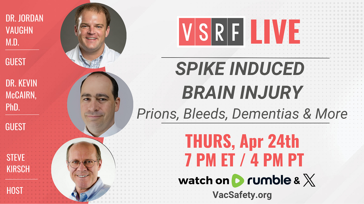 Join us tonight on VSRF LIVE for a groundbreaking discussion with Dr. Jordan Vaughn, M.D., a respected vascular expert and leading voice in the emerging field of post-spike protein neurological injury alongside Dr. Kevin McCairn, PhD, a neuroscientist and one of the world’s most renowned experts on the effects of COVID19 on the brain. With […]