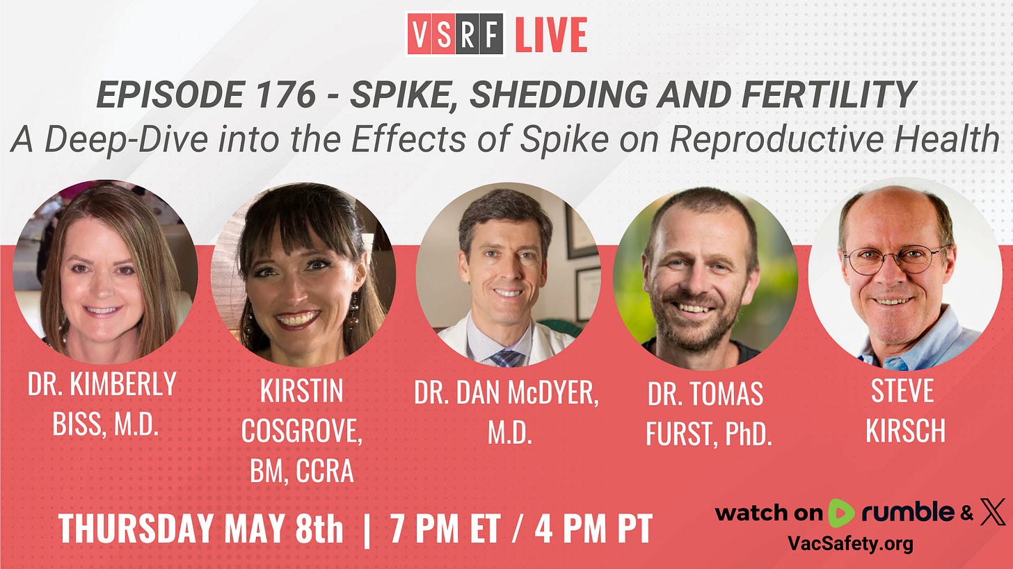 Join us tonight for a powerful episode of VSRF LIVE as we explore one of the most urgent and underreported topics of our time: the impacts of the spike protein on fertility. From OB/GYN clinical insights to breakthrough epidemiological research, our expert panel brings vital new evidence to light. We welcome Dr. Kimberly Biss, M.D., […]