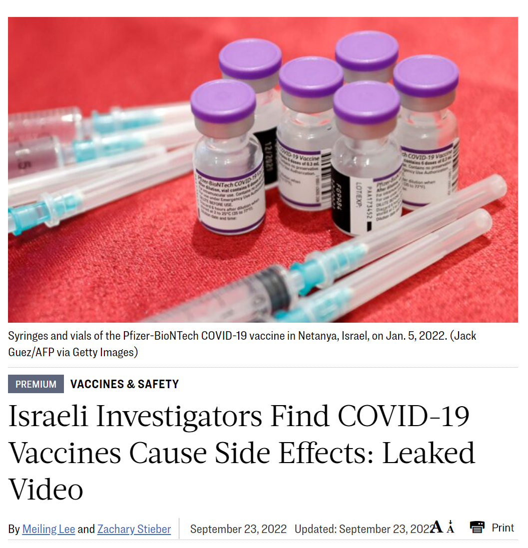 Here’s the Epoch Times article on the Israeli safety data. It’s an important story. Some highlights From Israeli Investigators Find COVID-19 Vaccines Cause Side Effects: Leaked Video: Rechallenge changes a causal link “from possible to definitive,” Dr. Mati Berkovitch, head of the research team and a pediatric specialist, said at the meeting. and Many of the reported […]
