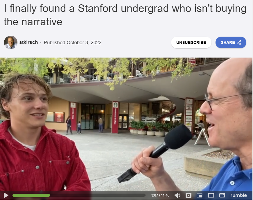 I went to Stanford University today to see if I could find anyone who wasn’t buying the narrative hook, line, and sinker. It only took me 2 hours before I talked to Aleko Brice, a senior at Stanford. He got one J&J shot because he felt he needed it to travel, and had pretty significant […]