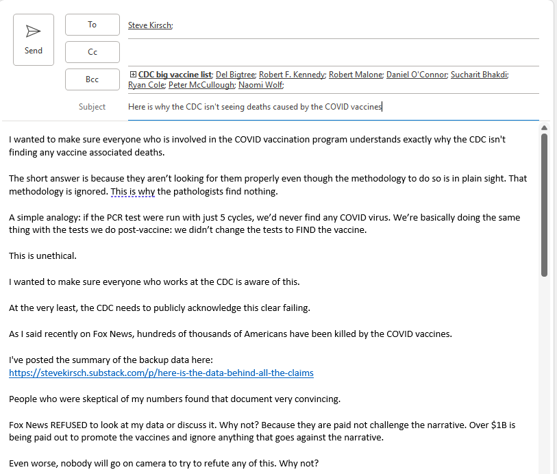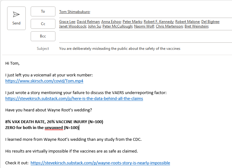Here’s the full text of the message Hi Tom, I just left you a voicemail at your work number: https://www.skirsch.com/covid/Tom.mp4 I just wrote a story mentioning your failure to discuss the VAERS underreporting factor: Steve Kirsch’s newsletter Data justifying the claims I made on Fox News on Aug 10 Executive summary I appeared on Fox […]